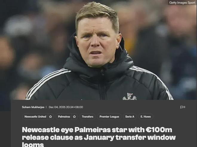 ESPN巴西站消息,纽卡斯尔正关注帕尔梅拉斯的阿兰-埃利亚斯,这名21岁的新星合同中有价值1亿欧元的违约金条款。